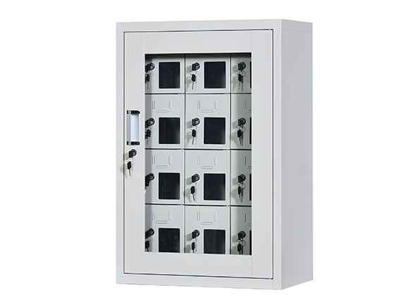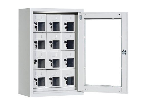 手機保密柜正面為對開金屬邊框玻璃大門,便于觀察柜內(nèi)情況,堅固透亮,美觀大方。